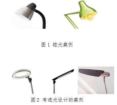 遮光性??垂庠床糠质欠裼斜┞对跓粽滞獾牟糠?,如圖1所示,在正常使用中可以看到光源,這種臺燈容易產生眩光,圖2所示的幾種設計,可以很好的遮擋光源。遮光的設計通常會影響臺燈的出光,在看臺燈遮光性好壞的同時,同時要關注臺燈的光線是否照亮足夠大的工作面,且在工作面上的光線是否均勻。