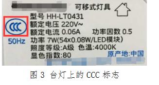 臺燈被納入國家強制性產品認證目錄,必須通過CCC認證且加貼CCC標志才能出廠銷售。目前對于不帶電池的讀寫臺燈,只有加貼了CCC標志的產品,才能表明產品符合了電氣、機械等安全要求,即符合國家標準GB 7000.204和GB 7000.1的要求,可以安全使用。圖3中的即是CCC標志。