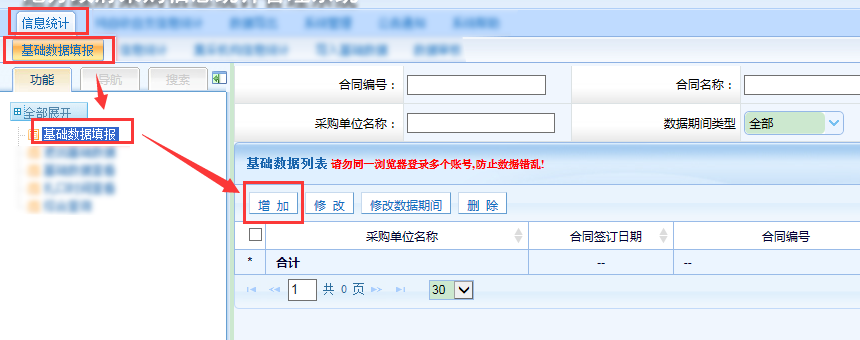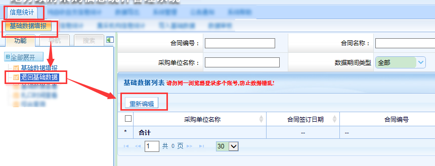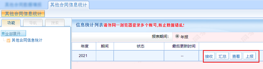 第四步,下級(jí)單位上報(bào)數(shù)據(jù)后,監(jiān)管單位在其他合同信息統(tǒng)計(jì)頁(yè)面接受匯總報(bào)表。
