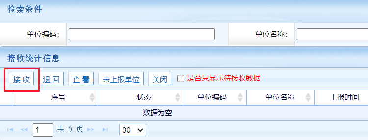 點(diǎn)擊接收按鈕,系統(tǒng)彈出如下接收頁(yè)面,選擇待接收數(shù)據(jù),點(diǎn)擊接收。