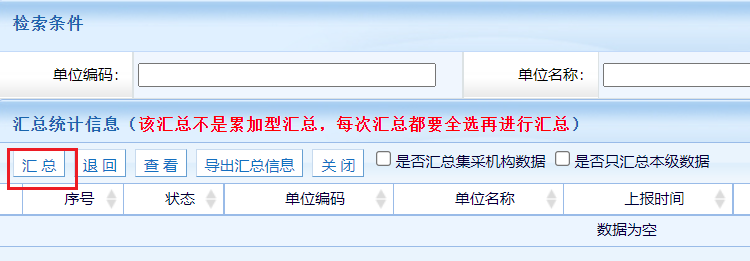 接收數(shù)據(jù)完成后,點(diǎn)擊匯總按鈕,系統(tǒng)彈出匯總頁(yè)面,全部勾選數(shù)據(jù)后,點(diǎn)擊匯總按鈕,完成匯總。