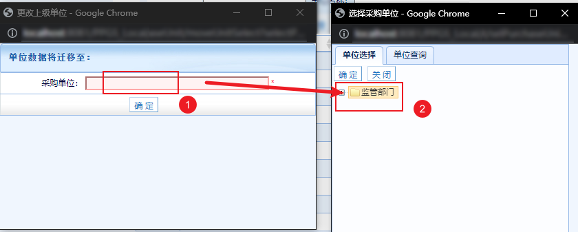 然后,在彈出的采購(gòu)單位選擇頁(yè)面,為下級(jí)單位選擇新的上級(jí)。